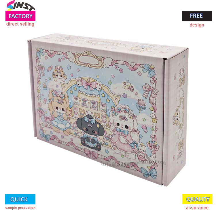 Bu şirin və sevimli bir üslubda olan paltar üçün rəngarəng büzməli kağız təyyarə qutusudur. Material büzməli kartondur və ümumi rəng sxemi əsasən çəhrayı rəngdədir, müxtəlif yumşaq və sevimli geyim üslubları ilə cütləşmə üçün uyğundur. Açıldıqdan sonra, hətta ixtiraçılığı da kəşf edə bilərsiniz - qutudakı substrat da cizgi filmi naxışları ilə doldurulur, kiçik itlər, pişiklər, bulud və ürək kimi yumşaq elementlər ilə əhatə olunmuşdur. İçəridə və xaricdəki naxış tərzi, sadə, sadə, lakin kifayət qədər xoşdur.