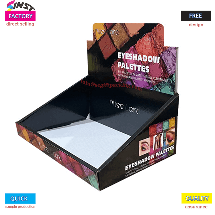 Kosmetik Makiyaj və Pudra Ənlik tezgahı displeyləri sərfəli və ekoloji cəhətdən təmiz seçimdir. Bu qutular yüngül və davamlı büzməli kartondan hazırlanır. Məhsullarını cəlbedici və peşəkar şəkildə nümayiş etdirmək istəyən müəssisələr üçün tezgah üstü displey qutuları karton yüngüldür və piştaxtaya və ya rəfə yerləşdirilə bilər ki, bu da onları konfet göstərmək üçün mükəmməl edir. , kosmetika və ya kiçik oyuncaqlar və digər kiçik məhsullar.