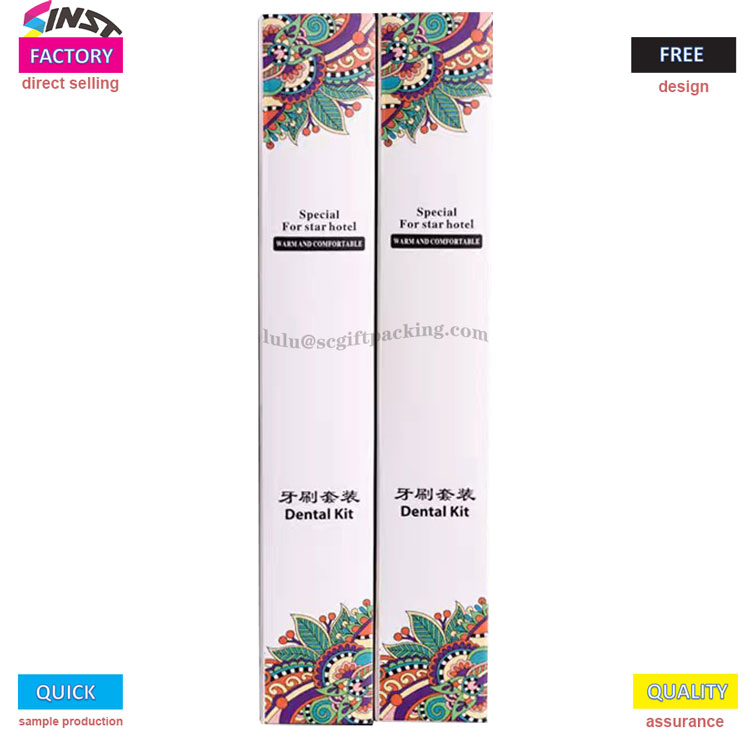 Hotel Diş fırçası qablaşdırması, otellər və ağızdan qulluq markaları üçün xüsusi olaraq hazırlanmış yaşıl qablaşdırma həllidir! Qida dərəcəli inək kartondan istifadə edərək, xüsusi loqotipləri, məhsul təsvirlərini və yaradıcı nümunələri dəstəkləyən yüksək dəqiqlikli çap texnologiyası ilə birləşdirilmiş 100% təkrar emal edilə bilər. Qutu, nəqliyyat zamanı sıfır zədələnməsini təmin etmək üçün daxili / çox diş fırçası olan tək / çox diş fırçası saxlamaq üçün uyğun olan yüngül və təzyiq davamlıdır.