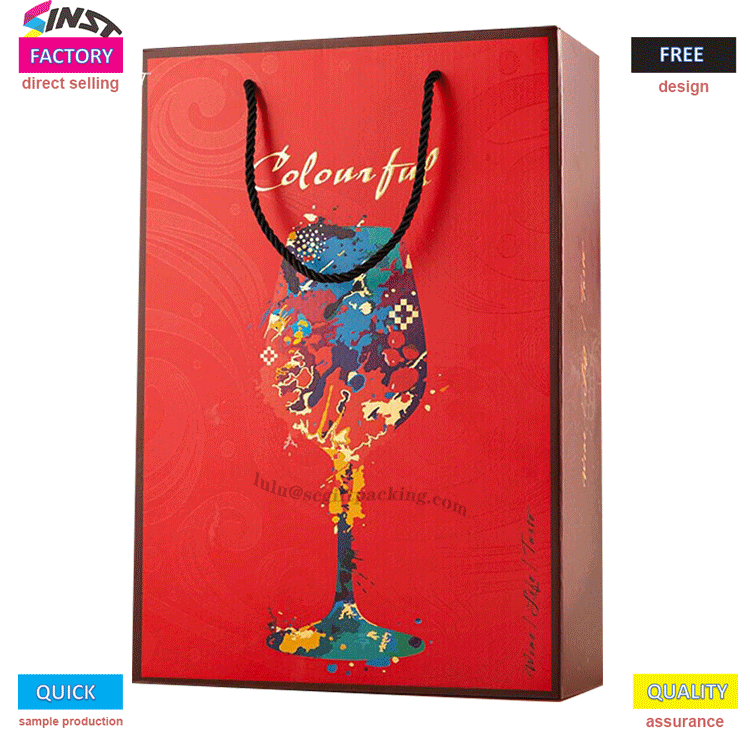 Qara ipin hər iki tərəfində şəkilli tutacaqlarçantadeformasiyasız 10 kq, qırmızı şərab, hədiyyə qutuları və ya suvenirlər saxlamaq üçün sabit olan qalınlaşdırılmış toxunmuş lentdən hazırlanmışdır. Qırmızı kartonun səthi kirlərin qarşısını almaq üçün su ilə örtülmüşdür, hətta spirt və ya barmaq izləri ilə ləkələnmiş olsa belə, nəm silməklə təmizlənə bilər; İçəridə əlavə padding yoxdur, ancaq boşluq üçölçülü kəsmə yolu ilə qorunur, bu da boğazsız 500ml qırmızı şərab şüşəsi saxlaya bilər. Daha da yaxşısı, alt gizli qatlama dizaynı, çanta boş olduqda, logistika sahəsindən, sərgi saytından müştərinin evinə qənaət etmək üçün "sona qədər narahat olmaq" ola bilər.
