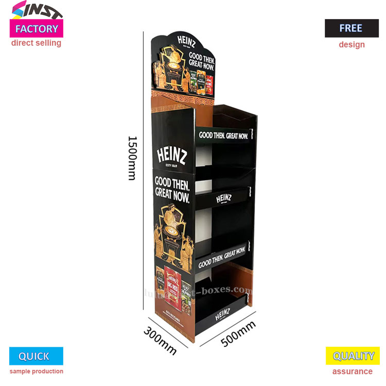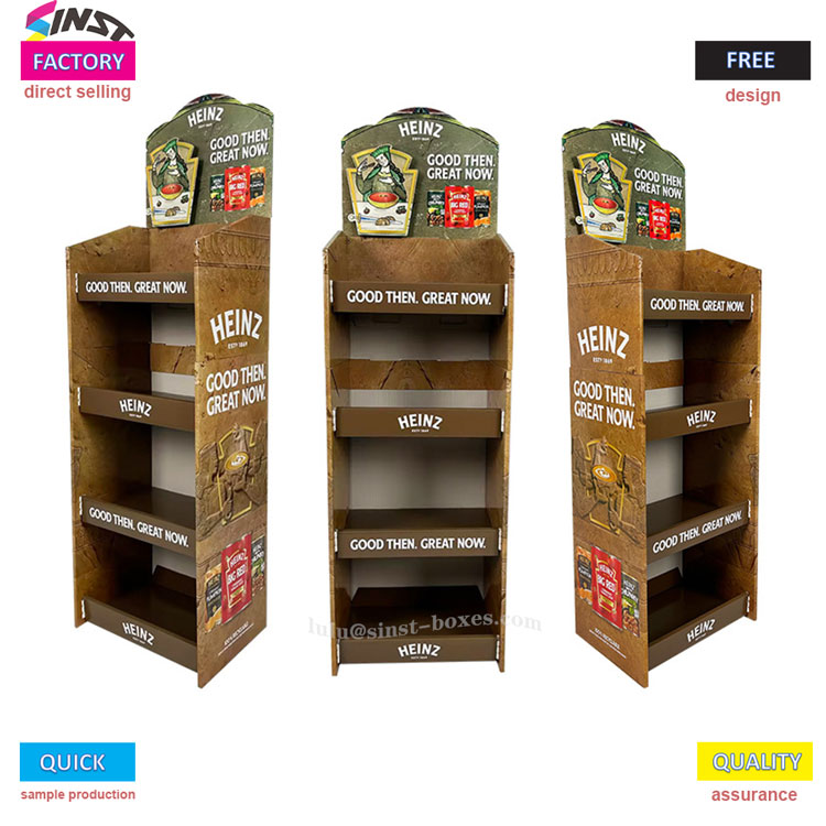 Bu pomidor sousu ekran rack sousu göstərmək üçün supermarketlər və rahatlıq mağazalar üçün "kiçik bir köməkçi" dir. Karton kağız ekran rafından hazırlanmış, yüngül və daşımaq asan olan bir sous displey rafının bir növünə aiddir. Çıxardılmış və tezgahda yerləşdirildiyi anda istifadə edilə bilər. Rəf dörd təbəqəyə bölünür, hər qat iki sıra pomidor sousu şüşələri saxlaya bilər və bunun yanında bəzi salat geyimləri və şirin və ədviyyatlı sous da ola bilər - "pomidor sousu ekranı rəfi" adlanır, eyni zamanda sous rəfi kimi istifadə edilə bilər. Kiçik bir supermarketin ədviyyat sahəsinə yerləşdirmək üçün uygundur.